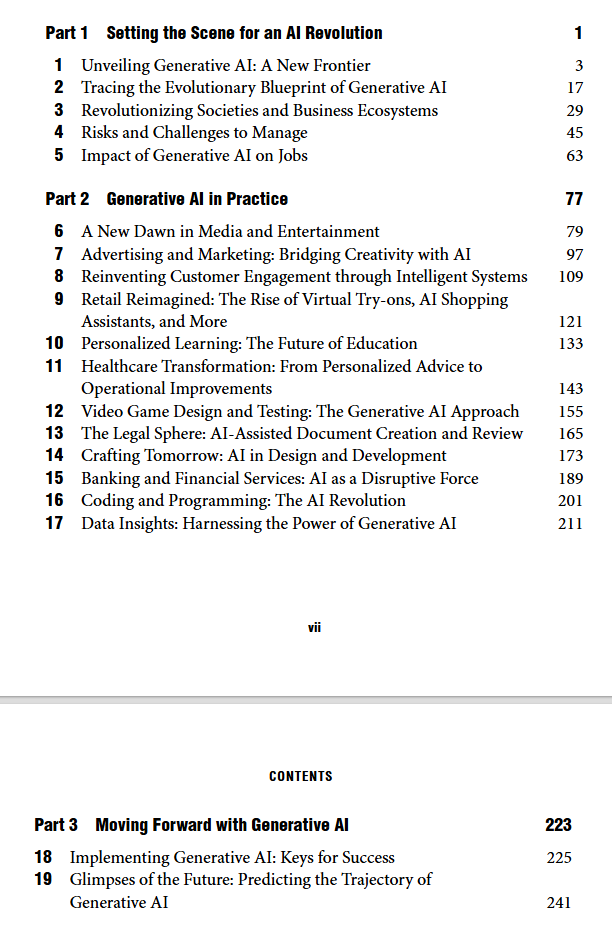 برنارد مار توضیح میدهد که هوش مصنوعی مولد (GenAI) همان نقشی را در قرن ۲۱ ایفا میکند که اینترنت در اواخر قرن بیستم داشت: دگرگونی بنیادین شیوه کار، زندگی و خلاقیت. او تأکید میکند که GenAI فراتر از چتباتهاست و به زودی در همه صنایع از آموزش تا درمان نفوذ خواهد کرد. هدف کتاب، معرفی کاربردهای واقعی و اخلاقی این فناوری است.